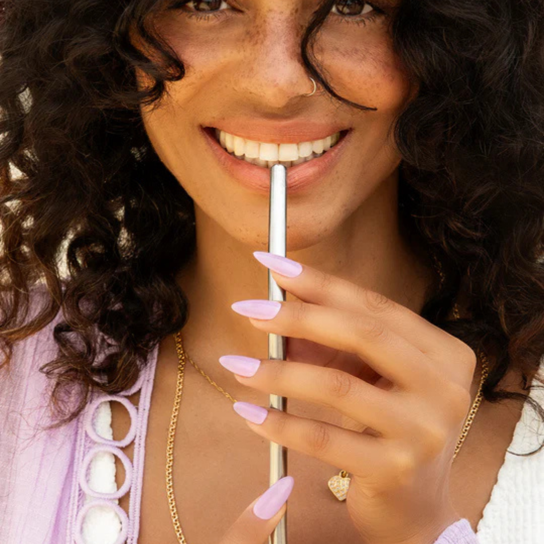 6. Aplicar uma camada de TOP COAT. Selar a ponta da unha. Catalisar durante 60 segundos em luz LED ou 120 segundos em luz UV*.