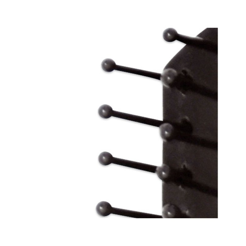 Escova de cabelo textura para modelar com cerdas sintéticas e com terminação redonda para não danificar o cabelo. O corpo da escova é preto mate, revestimento de borracha.