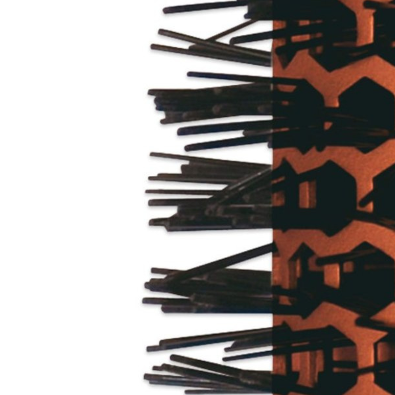 Escova térmica circular com cerdas resistentes ao calor. O corpo da escova é em cobre e cerâmica de elevada qualidade para uma distribuição perfeita de calor.