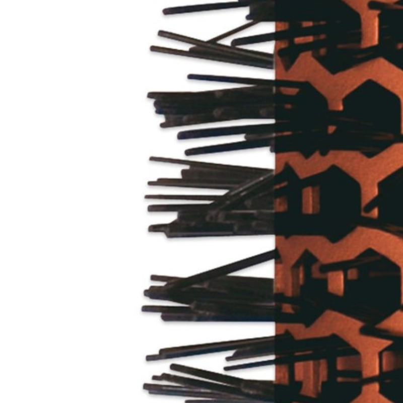 Escova térmica circular com cerdas resistentes ao calor. O corpo da escova é em cobre e cerâmica de elevada qualidade para uma distribuição perfeita de calor.
